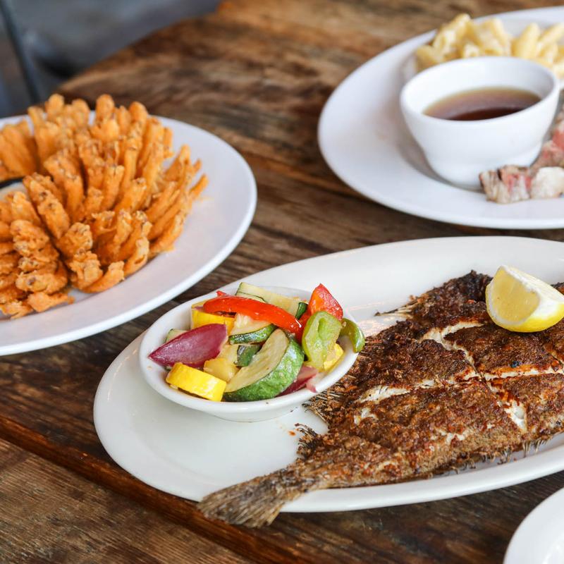This is a good vibe restaurant with an extensive menu and great service. The bar also looks like it's hopping with sports on tv and plenty of room to hang out there. The onion blossom is fantastic and the entrees and sides can be customized to your diet preferences...